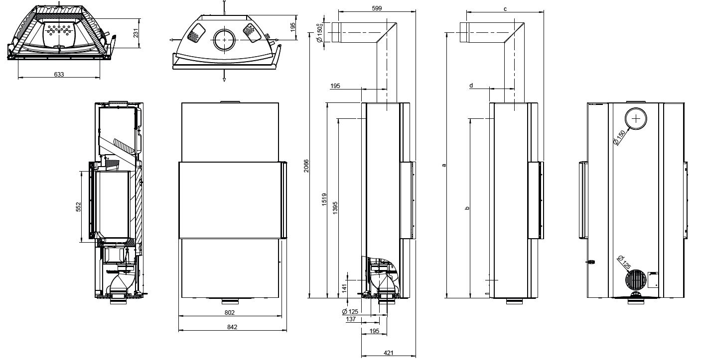- Rauchrohrabgang Ø 150 mm